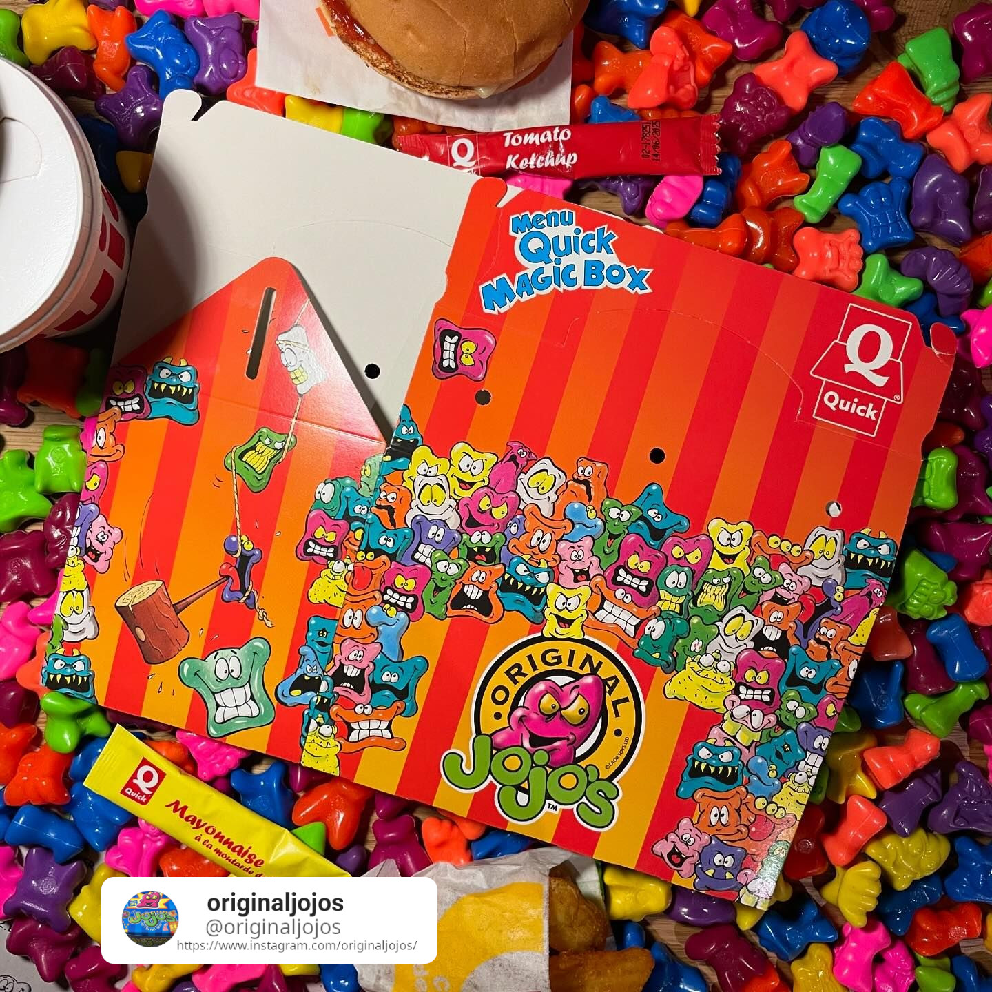 La promotion Quick a accompagné le lancement de la gamme Jojo’s en Europe (France et Belgique au moins). Pour l’achat d’un « menu Magic Box », un paquet de Jojo’s orange était offer.