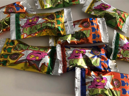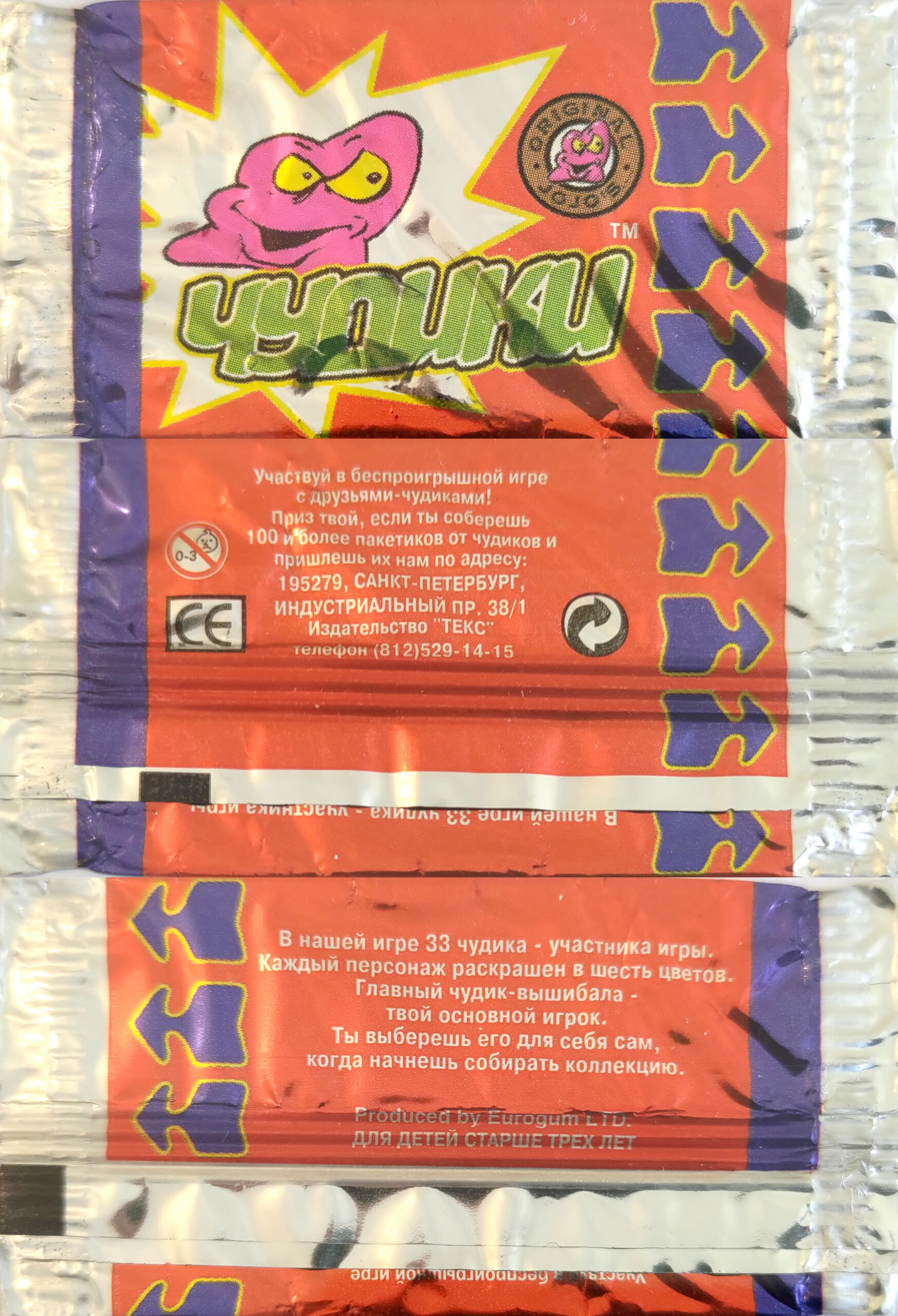 Ce sachet existe en quatre coloris : rouge à flèches bleues, bleu à flèches rouges, vert à flèches rouges et jaune à flèches vertes.